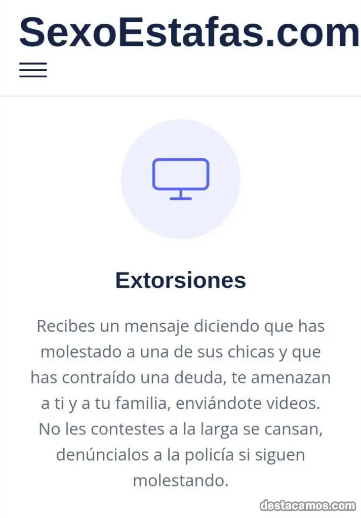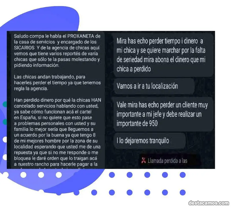 - Extorsión (Alguien te escribe diciendo que has hecho perder el tiempo a una de sus chicas, o que tienes una ,... Bloquéalos, denúncialos. Son estafadores que intentan extorsionar.)